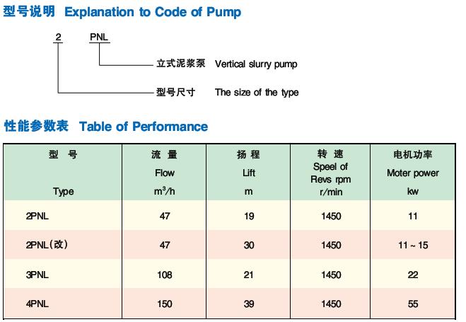 PNL型泥浆泵系单级单吸立式泥浆泵其泵体浸没在液体中,使用输送矿浆、泥浆一类的介质,也可以用于输送粘度低于300CP、含固体颗粒、有腐蚀性的液体。介质温度在-20~110℃之间,广泛适用于石油、化工、冶金、等工业部门。
