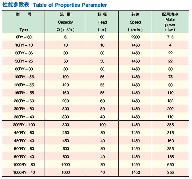 RYC型高温熔盐泵系我公司技术部门吸收新技术,与有关专家共同开发、研制而成,适用于输送温度在450~800℃、比重在1.8-2.0的高温熔盐,专供太阳能发电、离子膜烧碱、氧化铝、有机化工、三聚氰胺、核电等工业部门输送高温、特殊介质。性能参数:流量Q=10~1000m3/h、扬程H=10~200m、转速n=1450r/min、液下深度L=2~18m(泵底座到吸入口直接深度)。